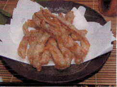 特級品のするめは、焼製法で香ばしさを出し、粉は薄力粉でやはりこれも最上質の物を、食用油はサラダ油のみを使用し、フライヤーはオールステンレスでその厚みは12oもあるというものです。 味は大人から子供まで幅広く喜んでもらえる味付けで、口当たりは家庭では絶対真似のできないものとなっています。
